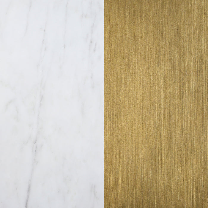 Freshen up your elegant dining room with the luxurious look and feel of genuine marble. This modern dining table pairs a round silhouette with beautiful white marble complete with light grey veining that offers organic elegance and dimensionality. This striking table stands on a conical pedestal base that receives a gleaming gold finish that radiates warmth and sophistication. This table is a stunning addition in a formal dining space, offering refined character to family and friends. The pairing of cool marble and warm brushed gold strikes a perfect balance. Key Features: ⢠Sculptural silhouette perfectly enhances a round marble dining table with modern glam allure ⢠Round table top crafted from luxurious white marble that brings subtle texture and dimension ⢠Conical base adds impactful, sculpted flair, perfect for formal spaces with inviting ambiance ⢠Pedestal features a gleaming metallic brushed gold finish that's rich and warm ⢠Perfect for daily or occasional use in a sophisticated dining room or elegant eat-in kitchen
